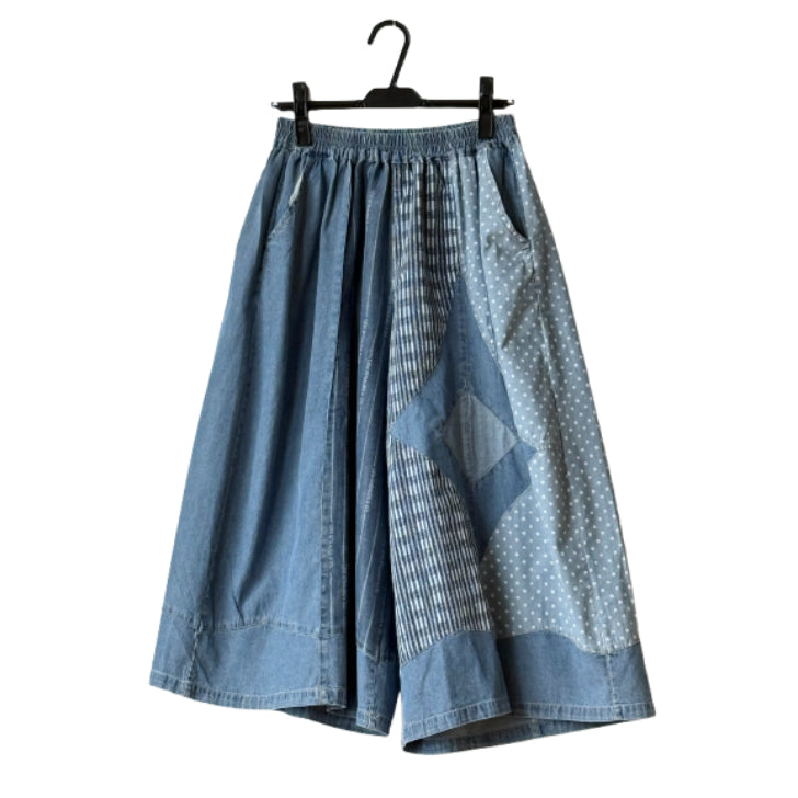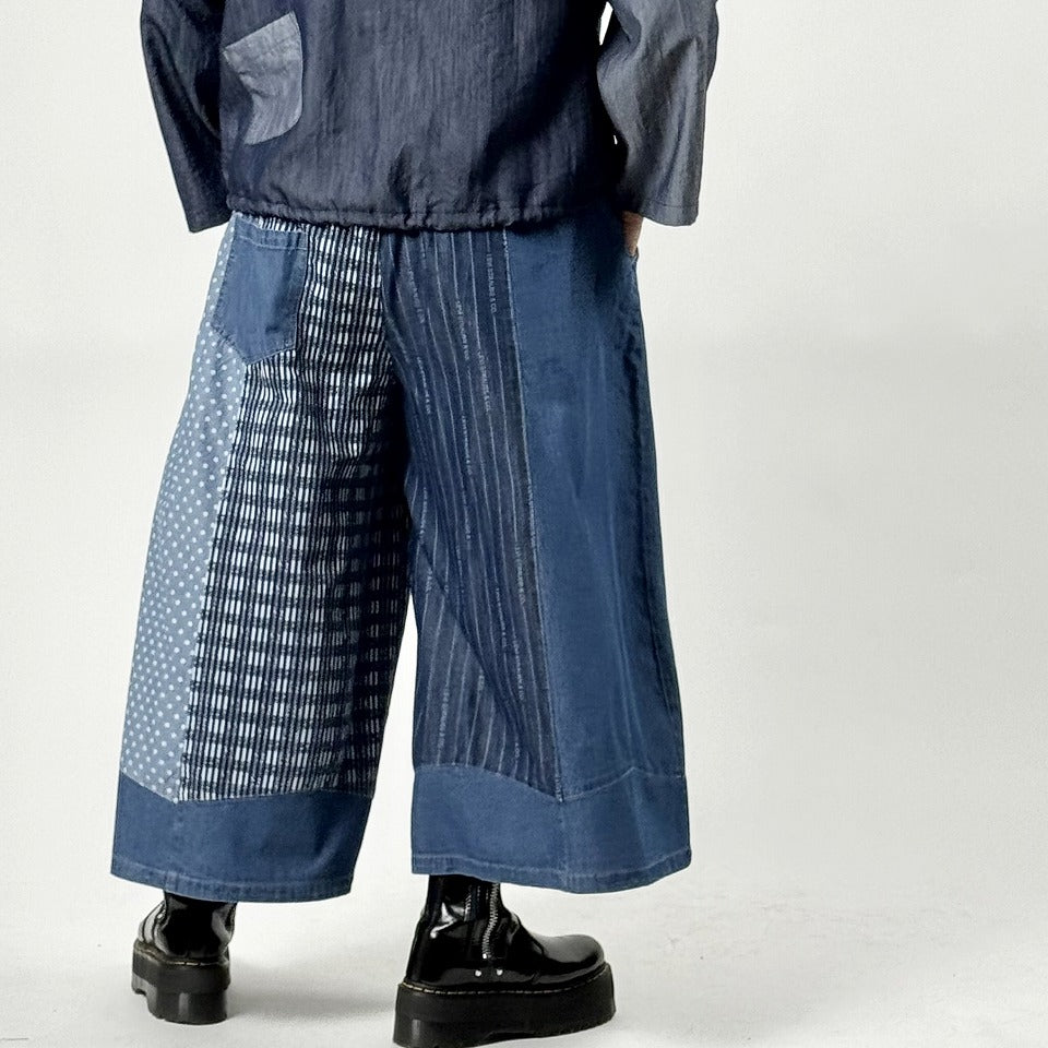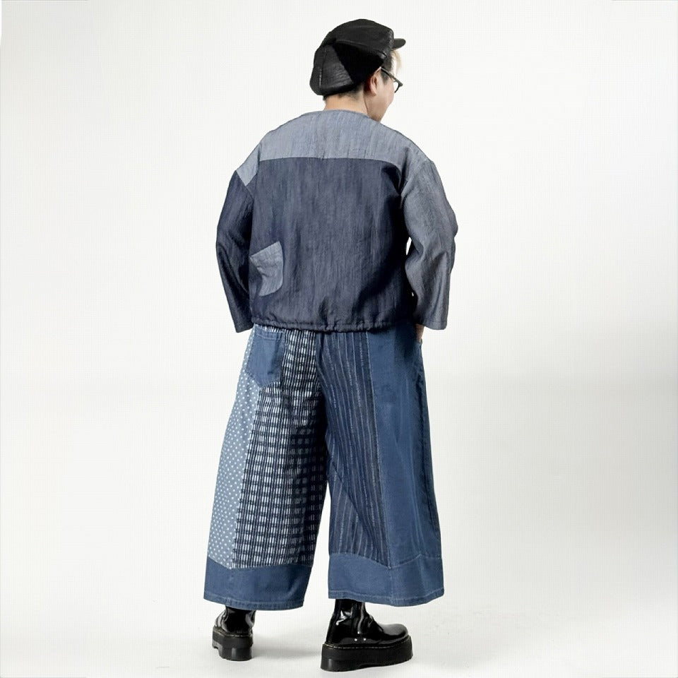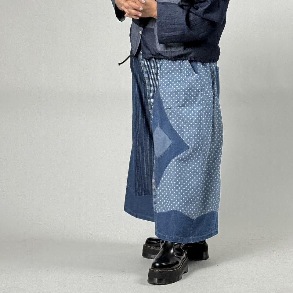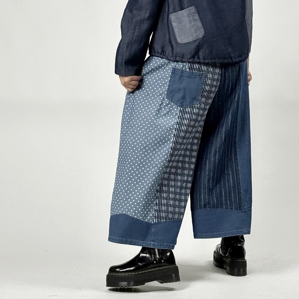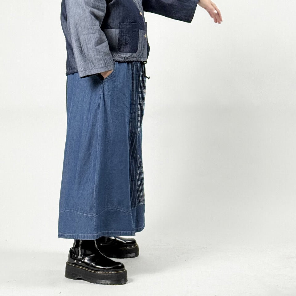 アシンメトリー異素材切り替え パッチワーク デニムワイドパンツ BPS-26231 [Bell Pony]