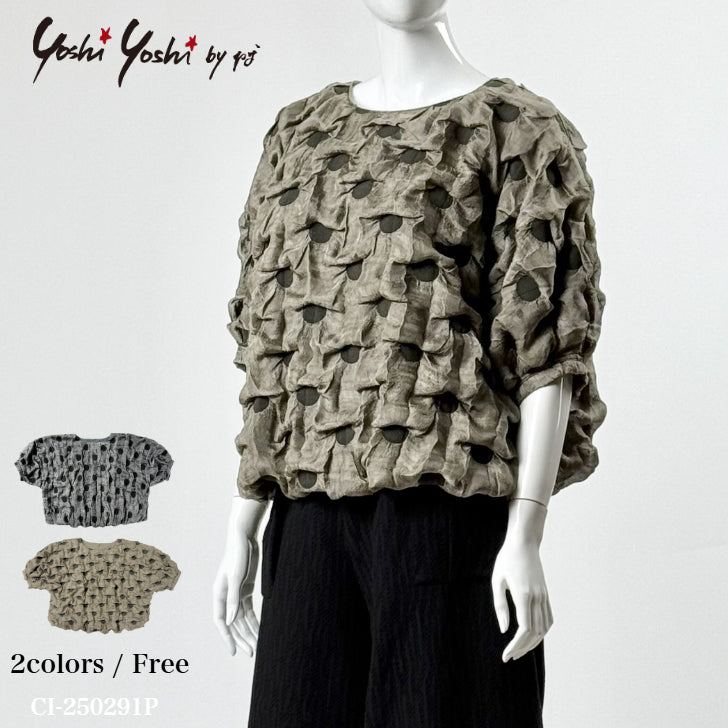 袋ジャガード織り ドット柄 ブラウス CI-250291P [Yoshi Yoshi by pj]
