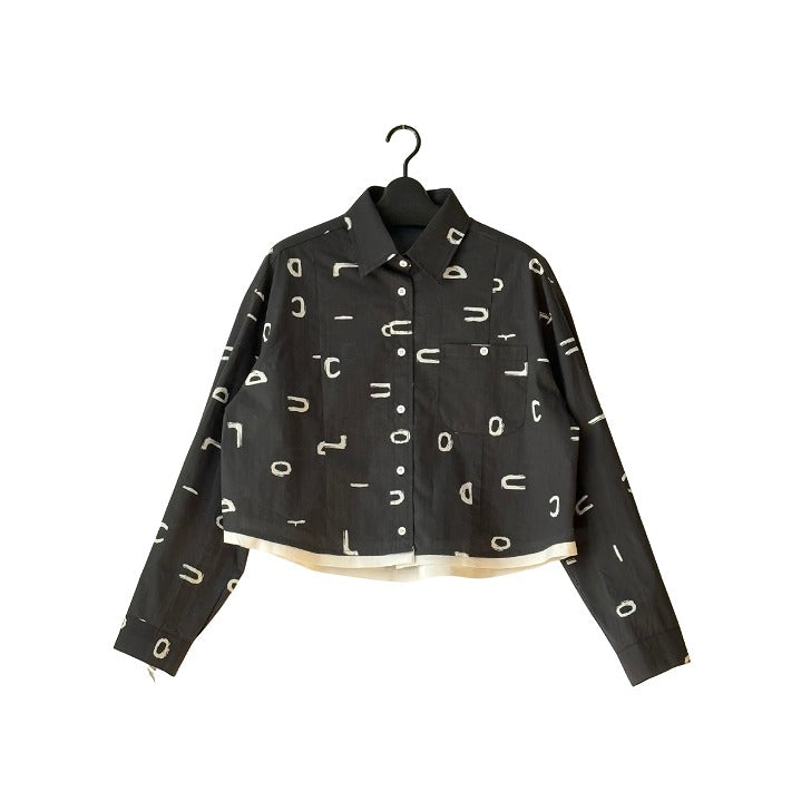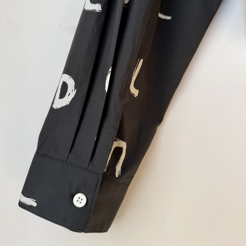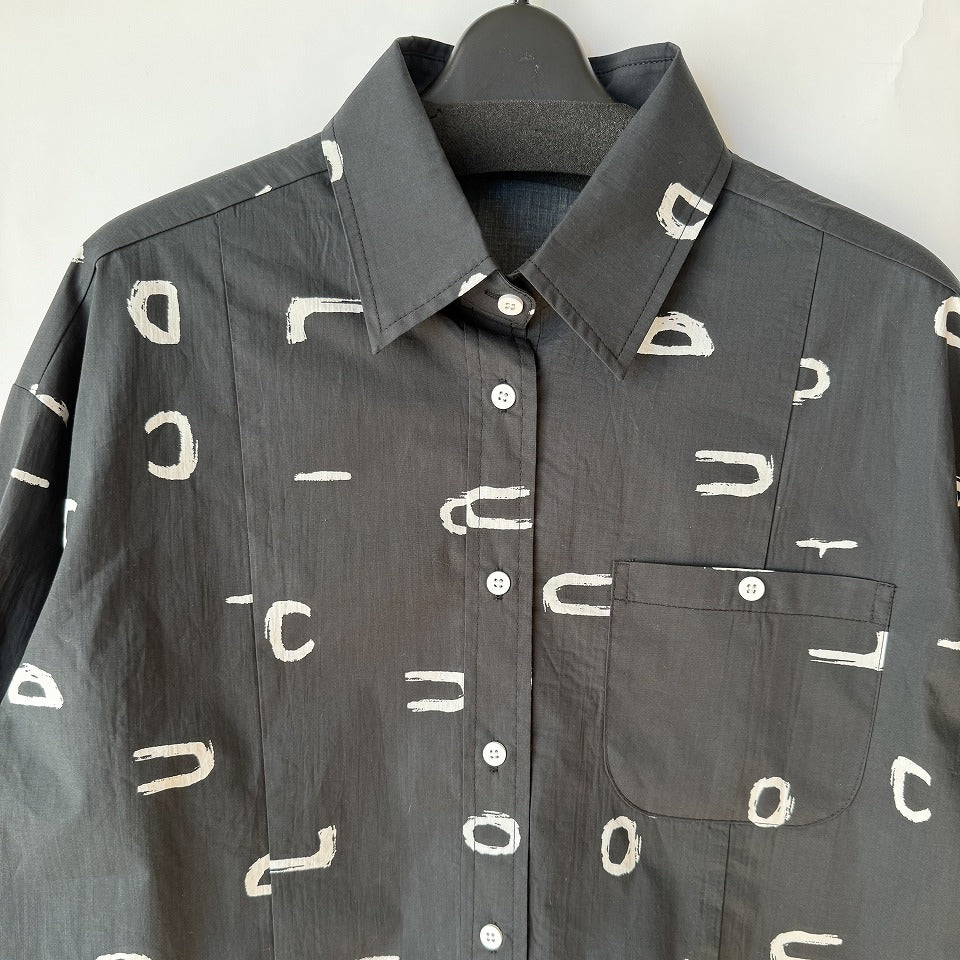 裾からさりげなく覗く“レイヤード風デザイン”が印象的な、大人のためのプリントシャツ。