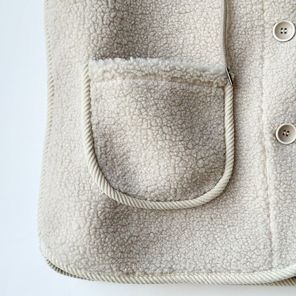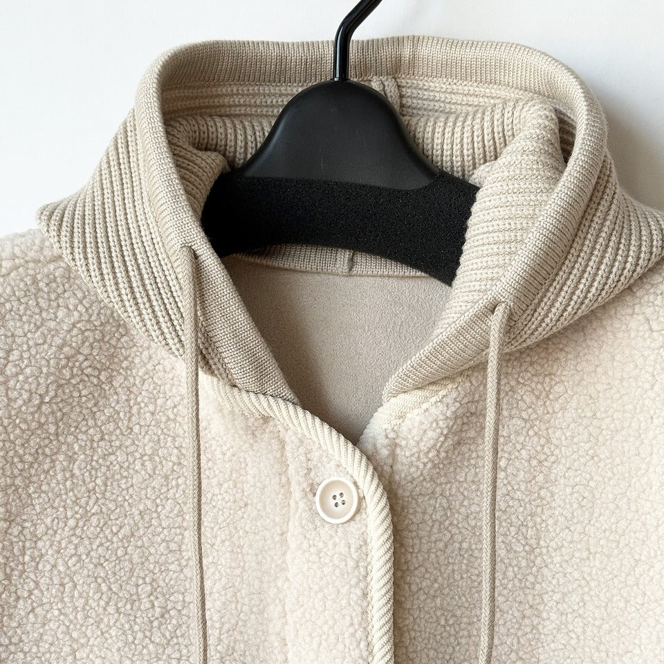 ふんわり暖かなプードルボア素材に、コーデュロイパイピング×ニットフードを組み合わせた、