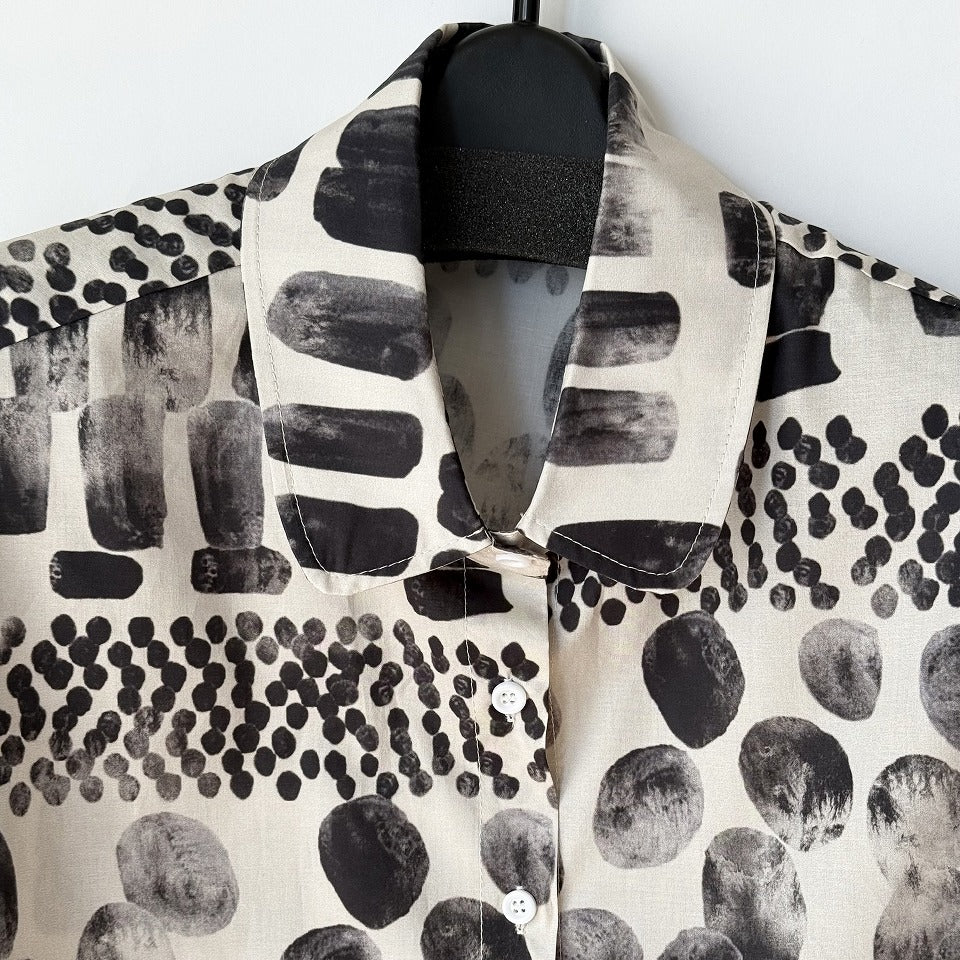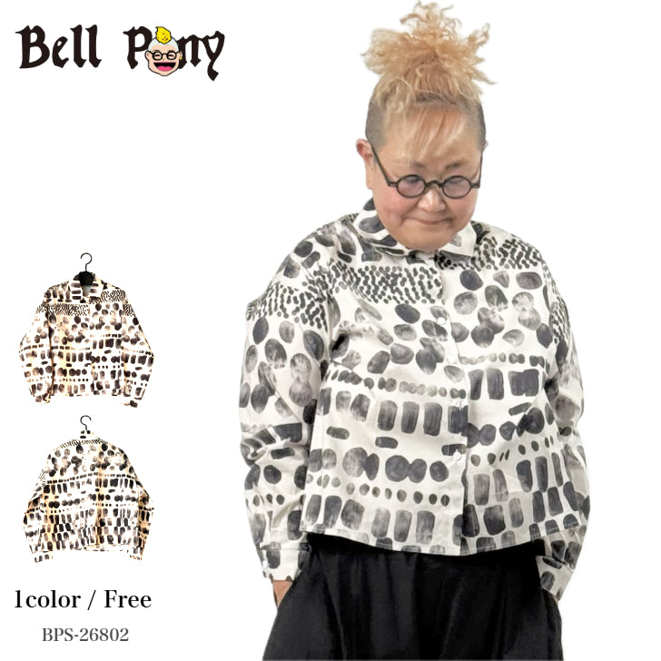 アート柄 モノトーンプリントシャツ BPS-26802 [Bell Pony]