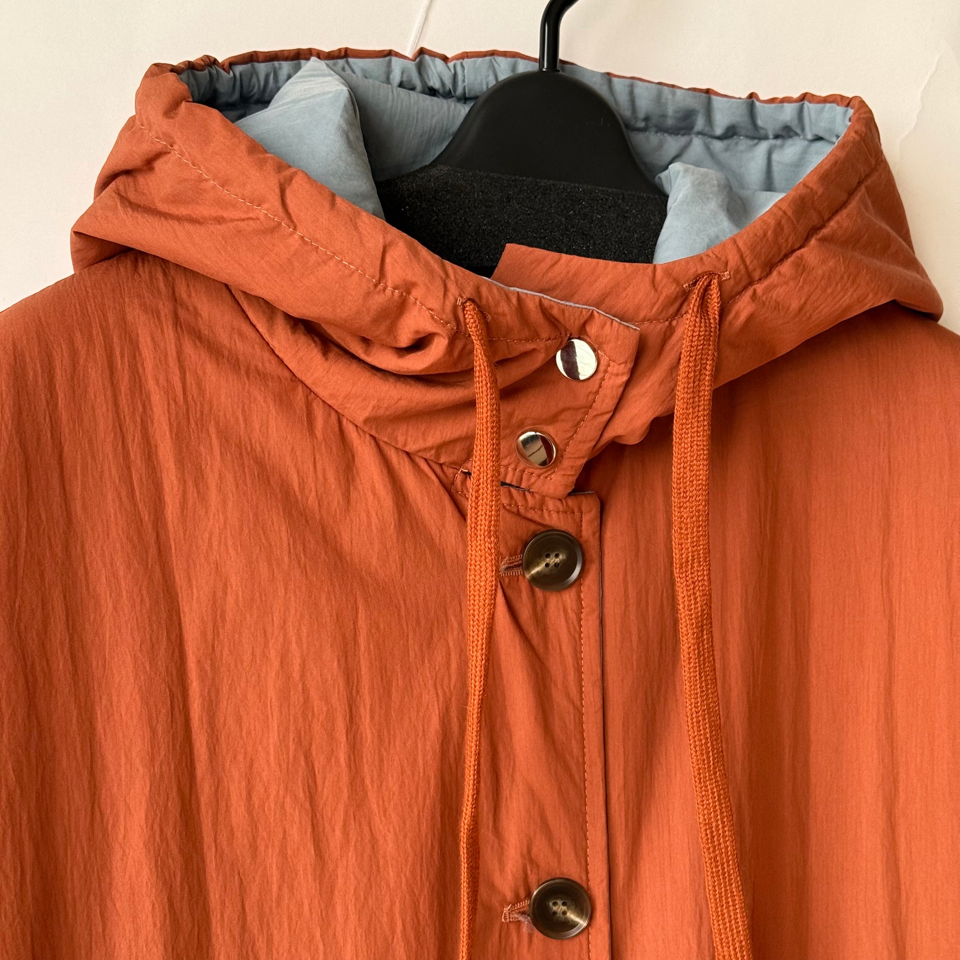 片面は柔らかなグレー、もう片面はコーデのアクセントになる深みのあるオレンジ。気分やスタイルに合わせてサッと裏返すだけで、簡単にイメチェンできます♪(オレンジ×グレーの場合)