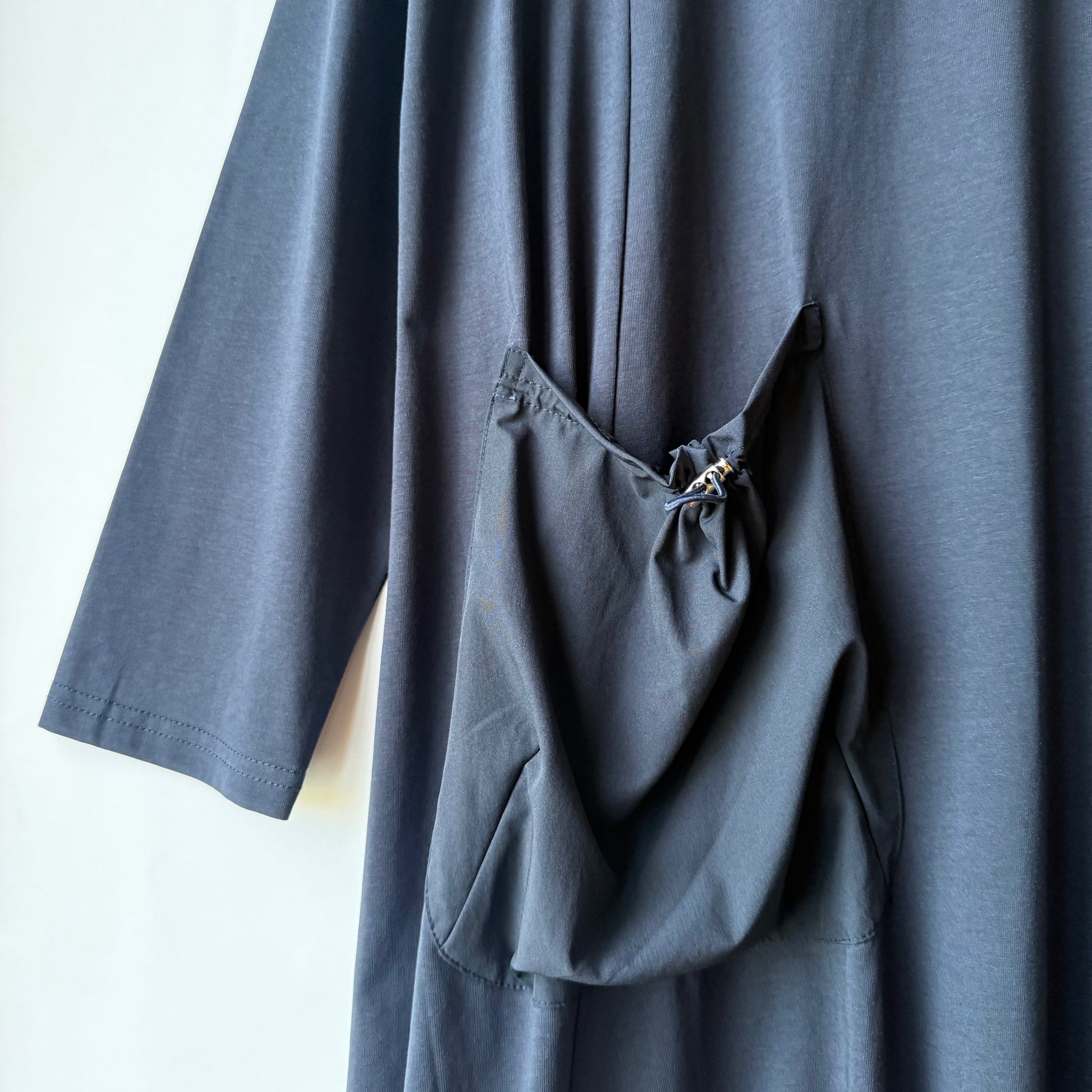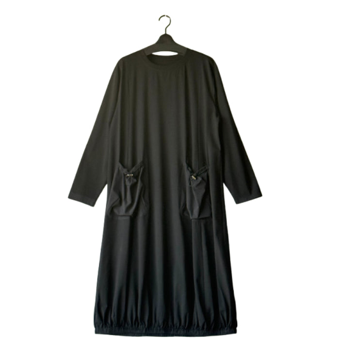 異素材ポケット付き ドレープデザイン ロングワンピース 長袖 BPA-25220 [Bell Pony]