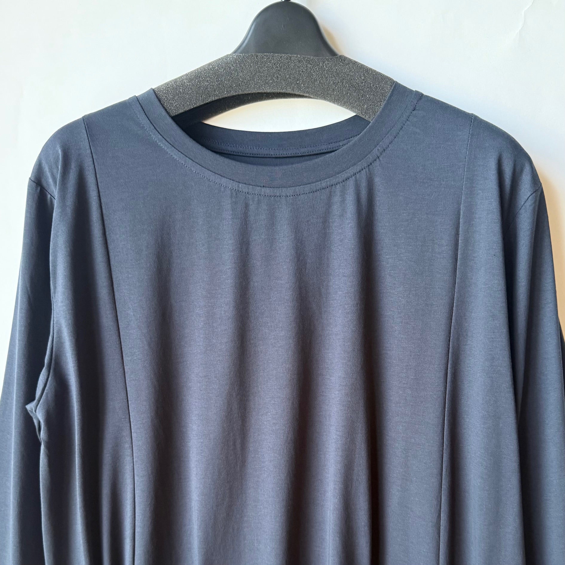 ・シンプルながら異素材使いやドレープが映える、まさに“ベルポニーらしい”一着です。