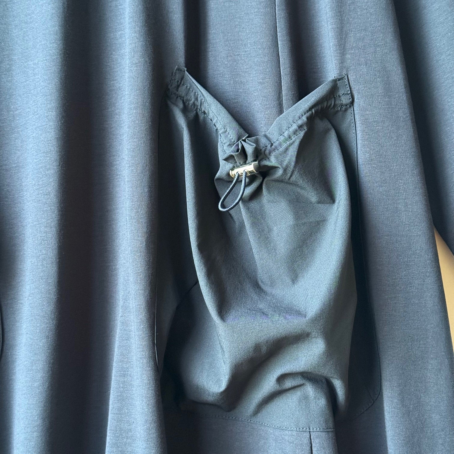 ◎異素材の大きめポケットが実用性とデザイン性を両立。