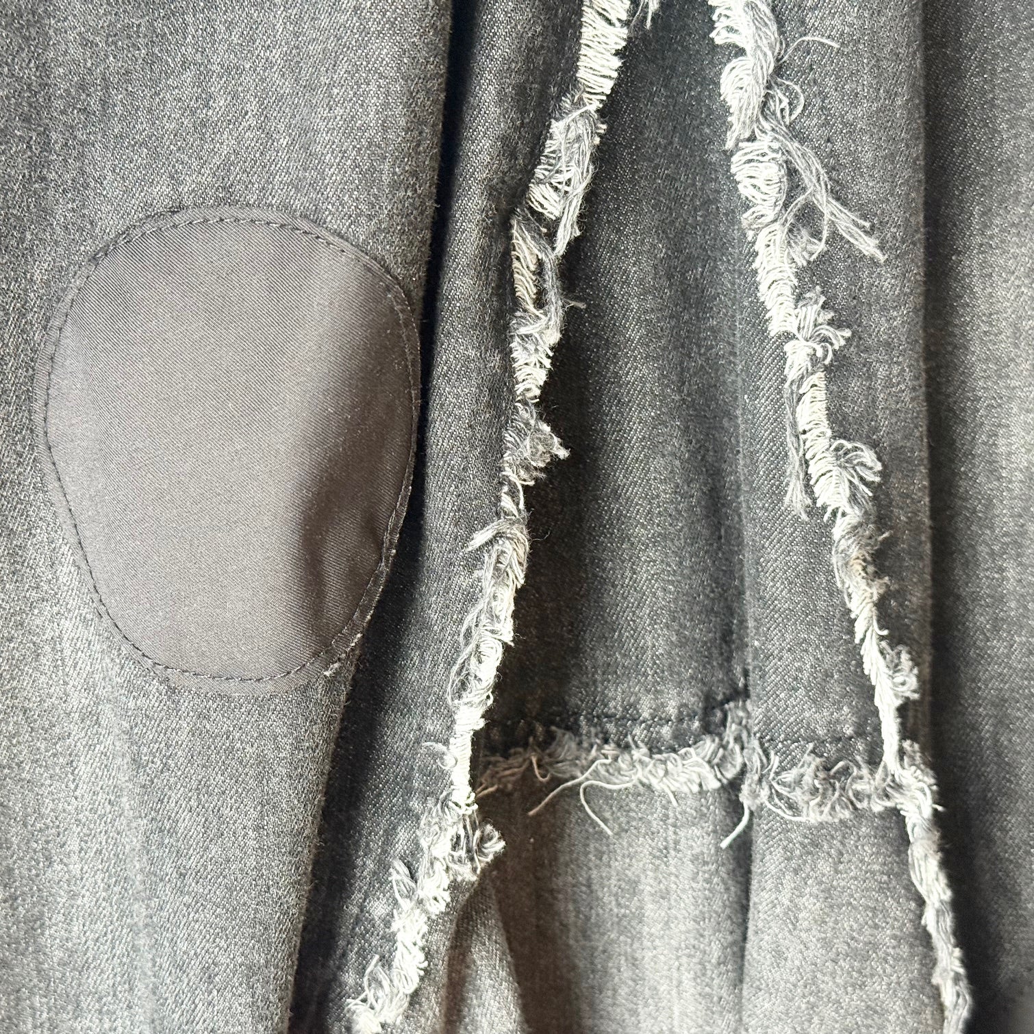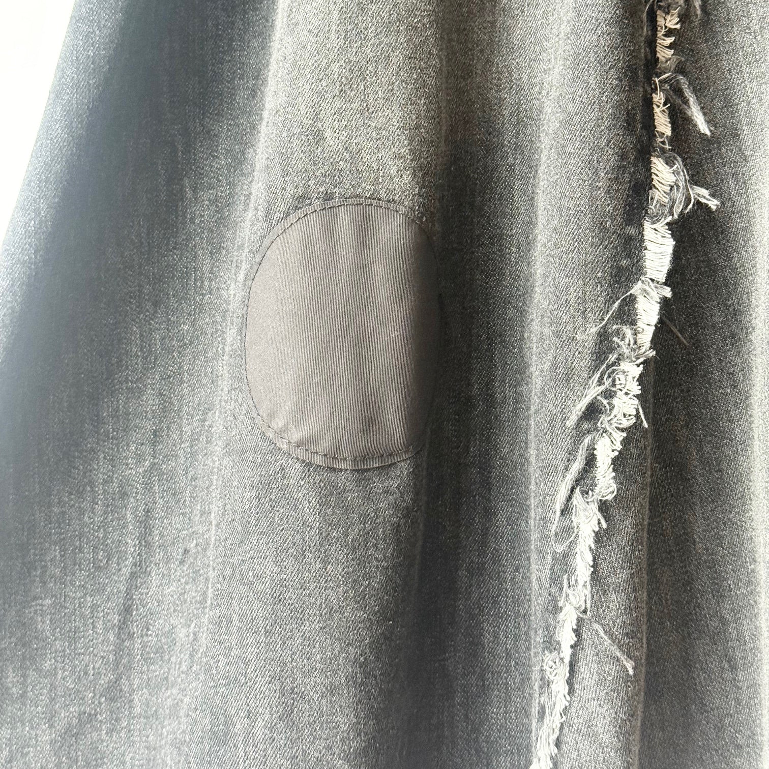 大人カジュアルに映える、ドット柄アップリケ・フリンジ加工・ダメージデザインを組み合わせた存在感抜群の一枚。綿100%の柔らかなデニム素材で、履き心地も快適です。