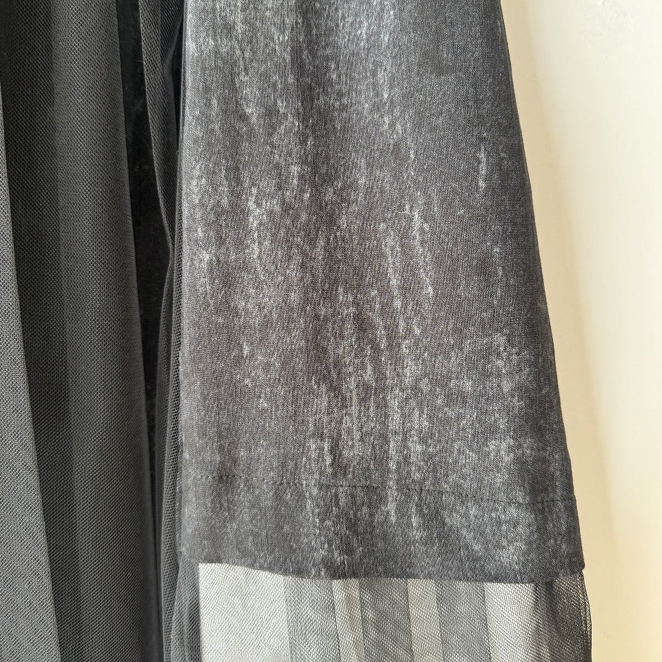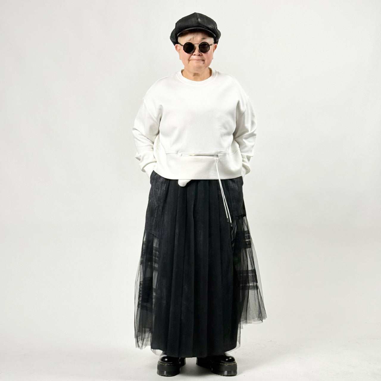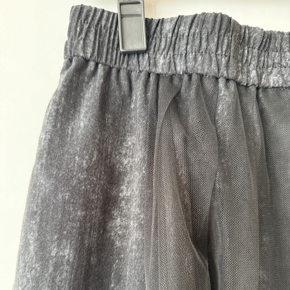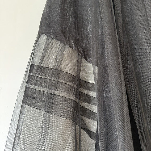 チュールとプリント素材を組み合わせ、両サイドに切替えラインを配置。