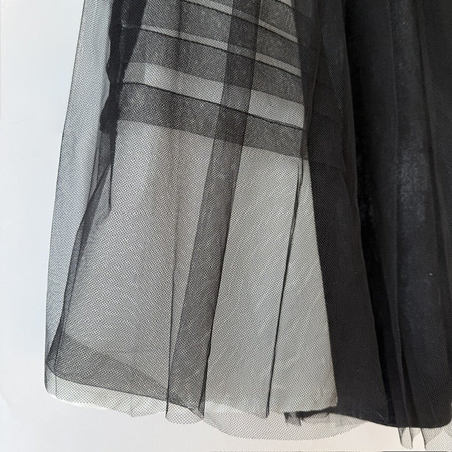 透け感のあるチュールが軽やかで、動くたびに優雅な印象を与えます。