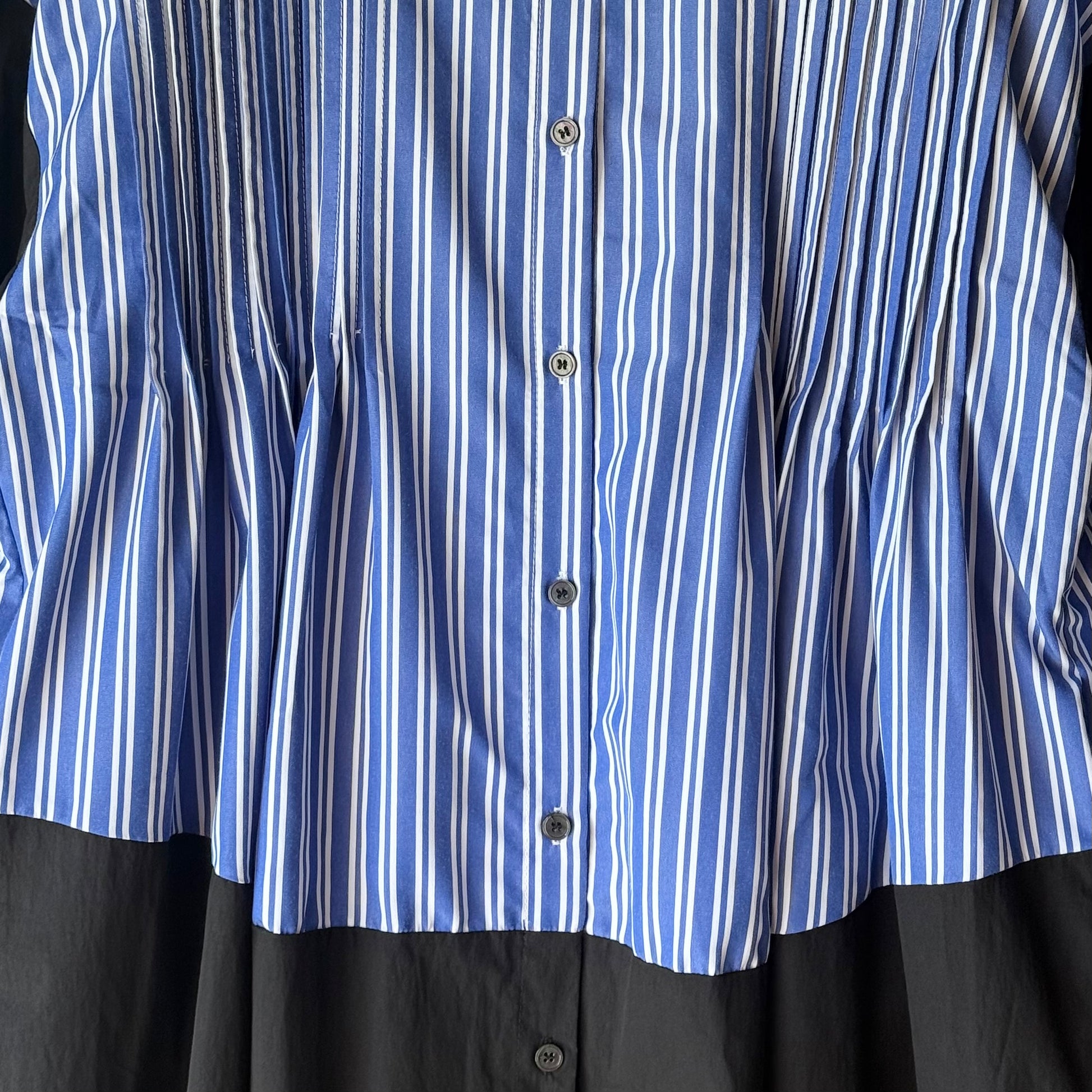 無地×ストライプの切り替えデザインがほどよく華やかで、1枚でコーデが完成します。