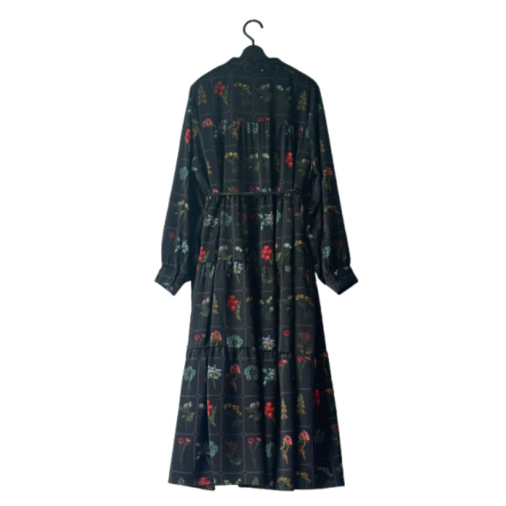 上品で落ち着いた印象のフラワー柄プリントロングワンピース。