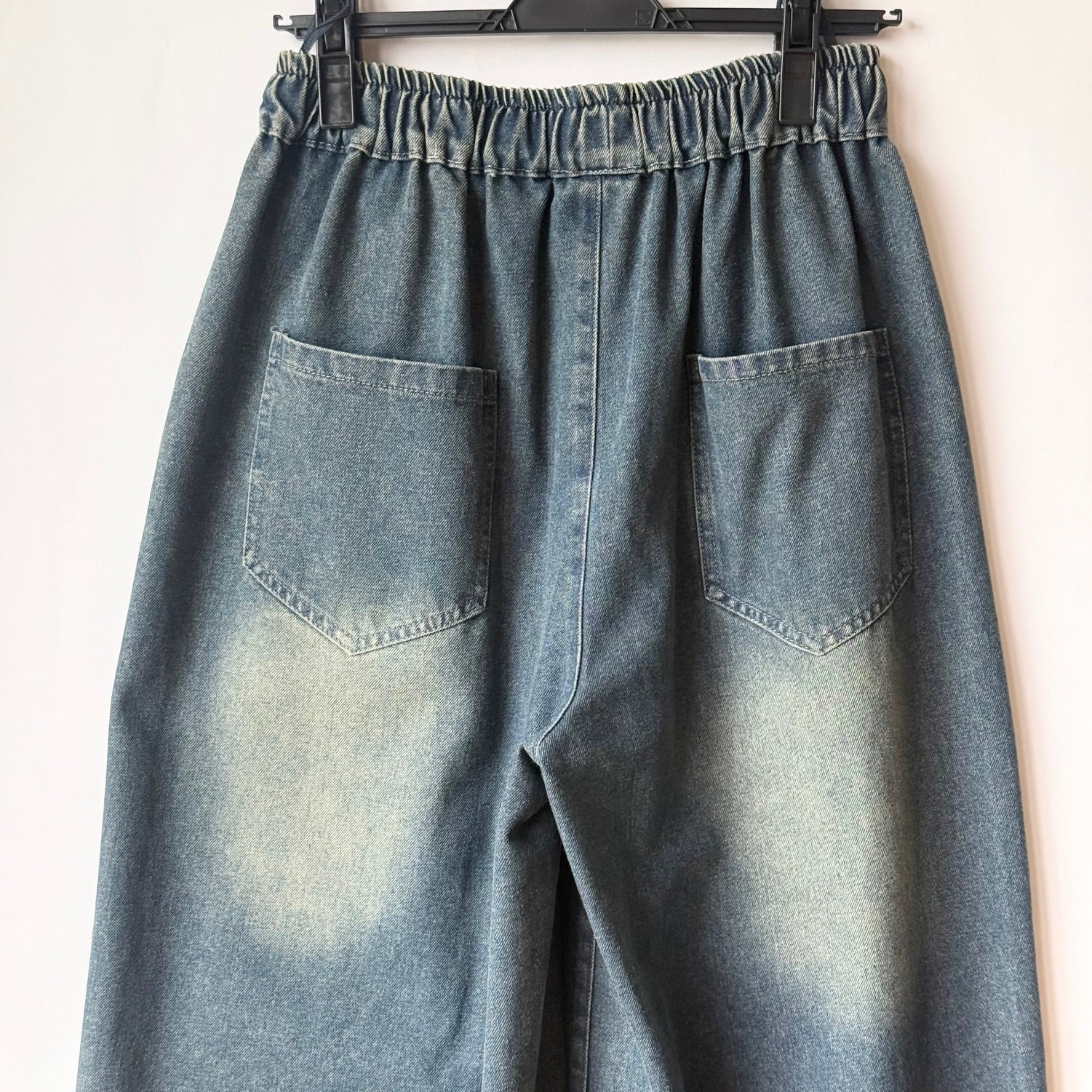 ・綿100%のしっかりとしたデニムにウォッシュ加工をプラス。柔らかく肌なじみが良い質感。